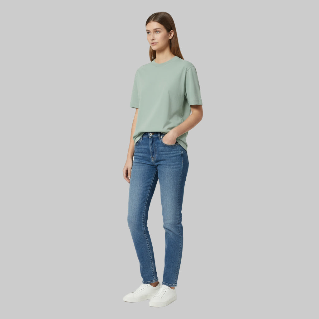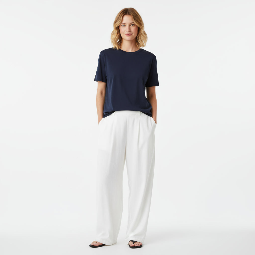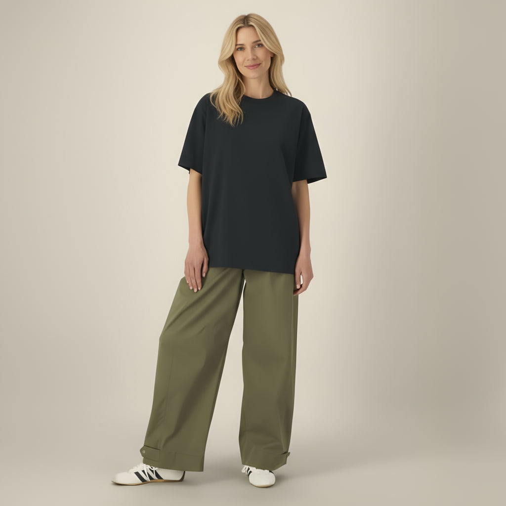 Tricou din bumbac 100% de înaltă calitate, oferind confort și respirabilitate pe tot parcursul zilei. Design minimalist, croială lejeră și material plăcut la atingere – perfect pentru ținute casual sau de zi cu zi.